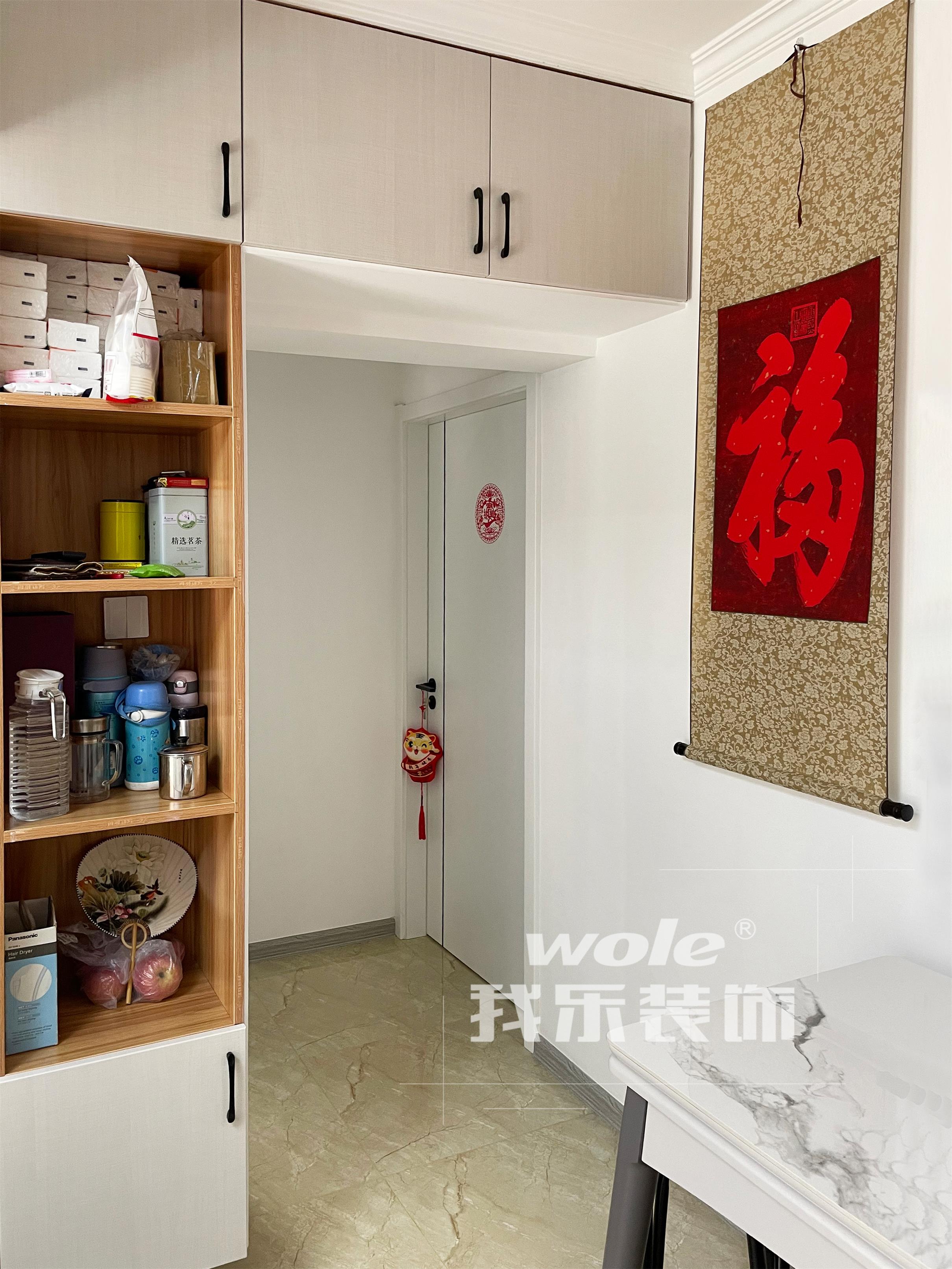 凹槽墻面、門上面都打上柜子,離地150公分,這樣一不占面積,二增加儲物功能;三防潮防濕;四不會在視覺上產生壓抑感。